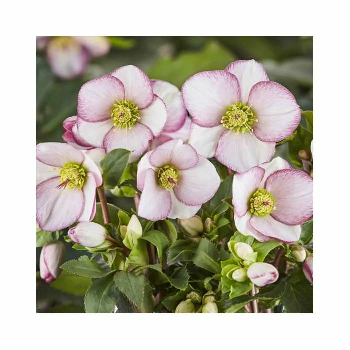 White, pink-rimmed blooms – charming bicoloured flowers as those of Ice N’ Roses® Picotee have been only a rare appearance among Snow Roses up to now. The unusual flower colour delights the eye from December into spring, especially if Ice N’ Roses® Picotee is planted in containers and placed so that they can be enjoyed from inside the home. Planted out in the garden, Ice N’ Roses® Picotee is a long-lived, low-care and robust perennial that grows more charming and beautiful every year.