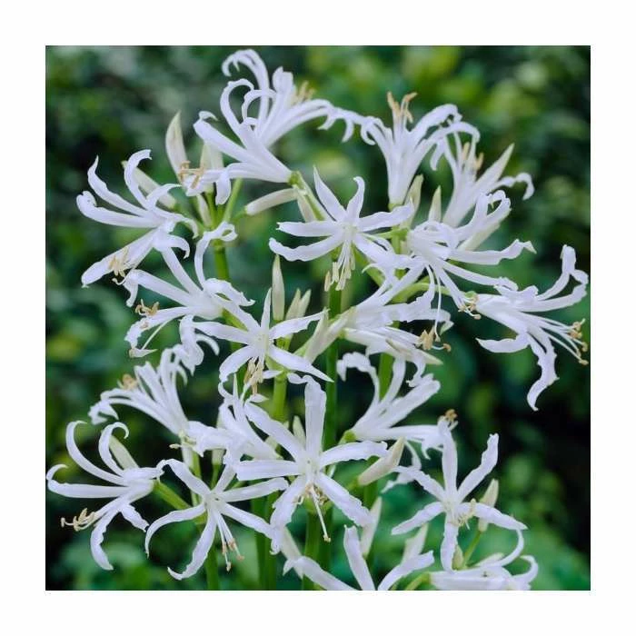 Nerine bowdenii ‘Alba’ bears pure white, star-shaped blossoms which unfurl atop their slender green stems. This beautiful composition makes this perennial perfect for making cut flowers, where they will look lovely in mixed bouquets. Why not plant them as part of a cut flower patch, or at the front of a border amongst pinks and purples? With a good flowering period, this variety will importantly add some softer colour to your autumn landscape too.